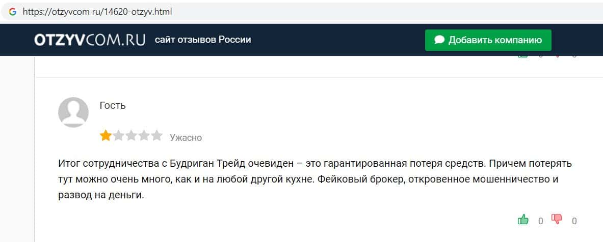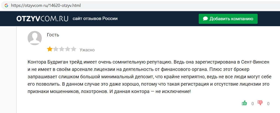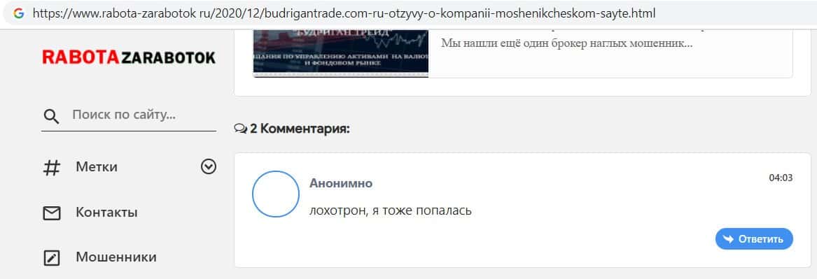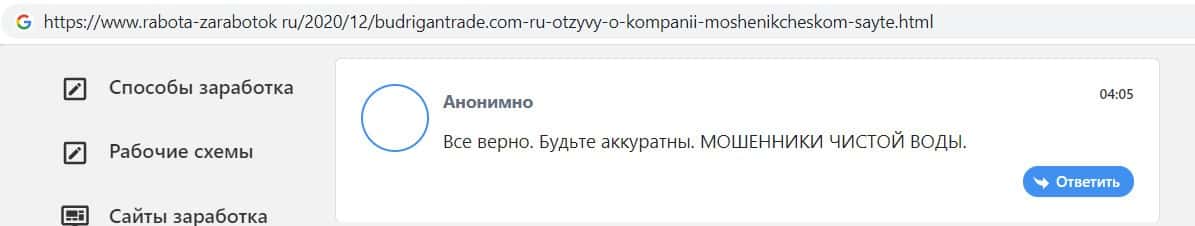 Ещё один пользователь в комменте призвал всех не доверять конторе аферистов BudriganTrade, так как они являются мошенниками чистой воды, репутация которых говорит сама за себя.
