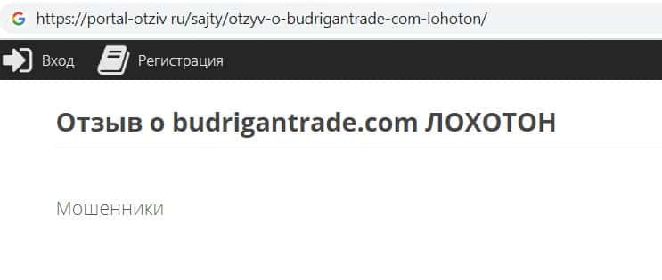 - Отзывы интернет пользователей о мошеннической конторе BudriganTrade