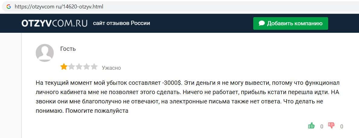 Автор данного отзыва написал, что его убыток в компании Будриган Трейд составляет 3000 долларов, так как лохотрон не позволяет ему вывести средства, а поддержка просто игнорирует.