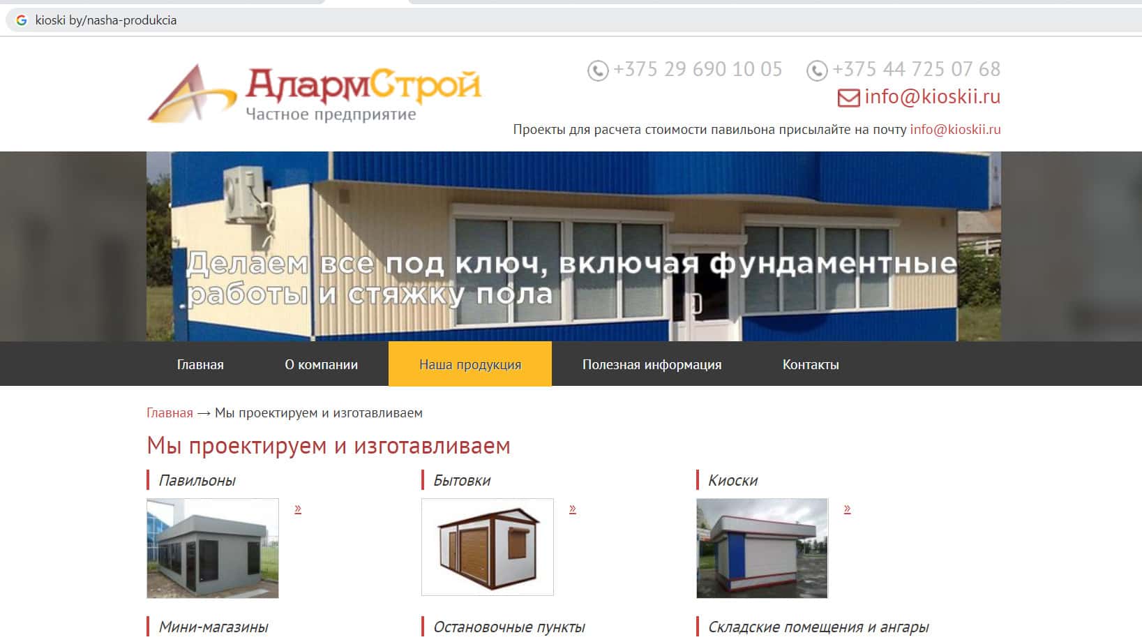 Дельцы Будриган Трейд, в том числе, видимо, Владимир Будрик, помимо незаконной деятельности, связанной с Форекс, еще и занимаются другим бизнесом - более честным, заметим. Работают аферисты из БадриганТрейд в сфере производства киосков и тому подобного, для этого у них есть сайт kioski by - скрин приводим ниже.