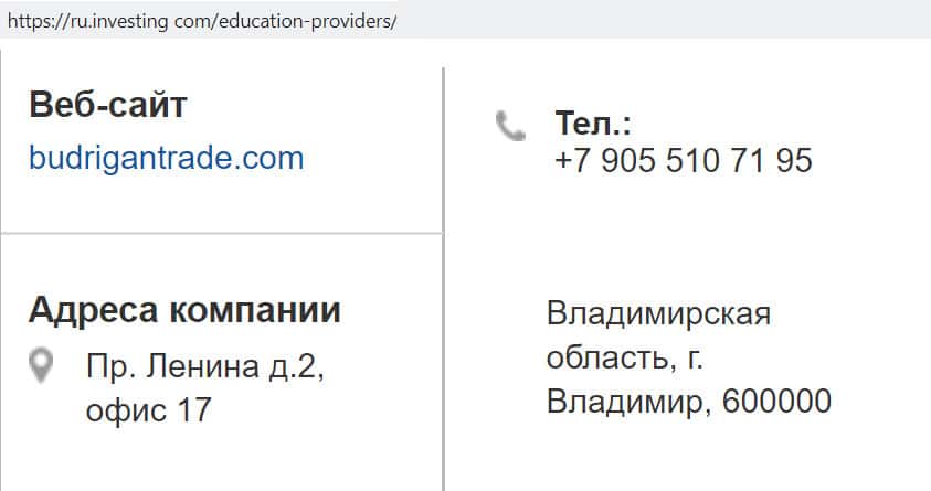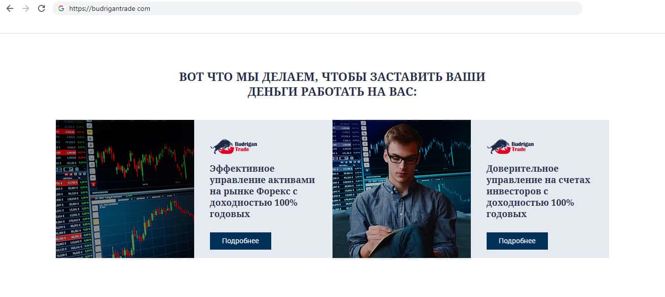 - Ложная информация на сайте BudriganTrade рассчитана на втягивание наивного человека в лохотрон