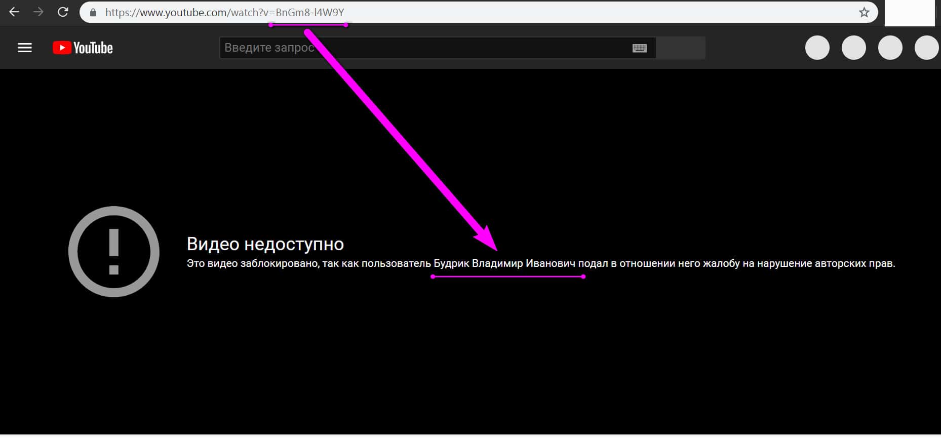 И тут имеется крайне важный момент, некий Будрик Владимир Иванович жалуется ни то, что в виде приведены какие-то недостоверные сведения, а на то, что данный видео контент принадлежит ему, т.е. попросту врет человек, который представляется именем Будрик Владимир Иванович. Скрин с фактом данного вранья приводим ниже.
