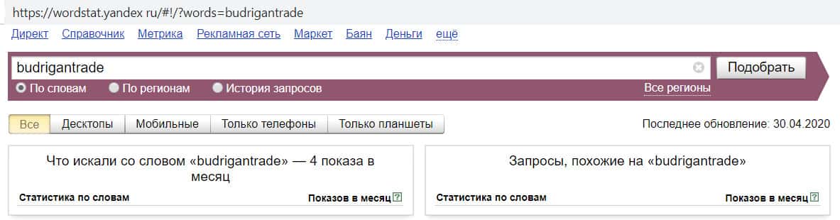 Проанализировав проект BudriganTrade на сервисе Ворд Стат поисковой системы Яндекс, можно смело заявить о том, что сейчас проект Будриган Трейд по сути мертв, но до сих пор сайт функционирует, и делается это лишь для того, чтобы взять денег с неосведомленного, находящегося в поисках каких-то заработков пользователя сети Интернет.