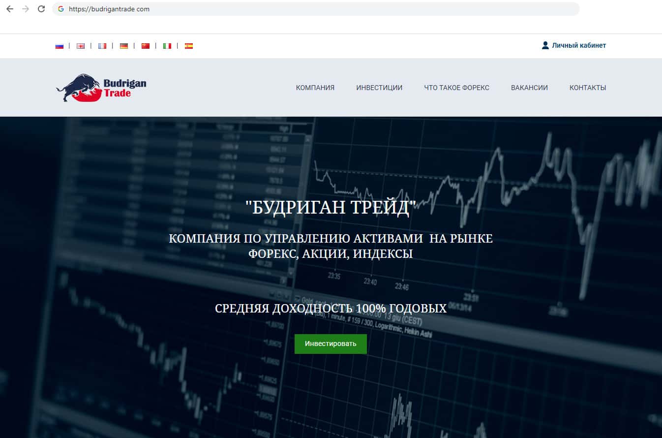 budrigantrade com - главный интернет ресурс компании мошенников BudriganTrade