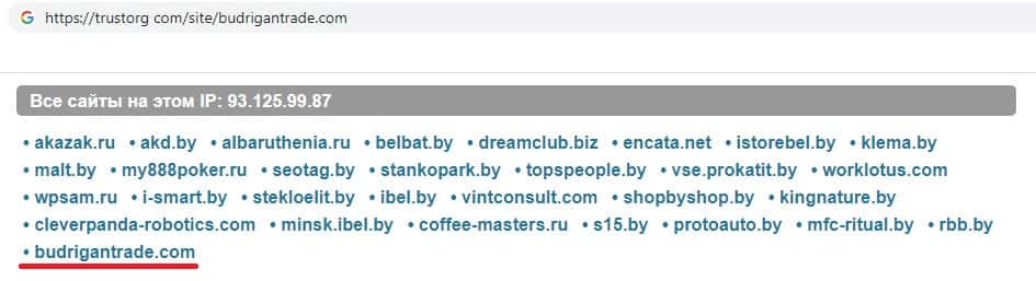 Аферисты Будриган Трейд делят свой айпи с множеством сайтов