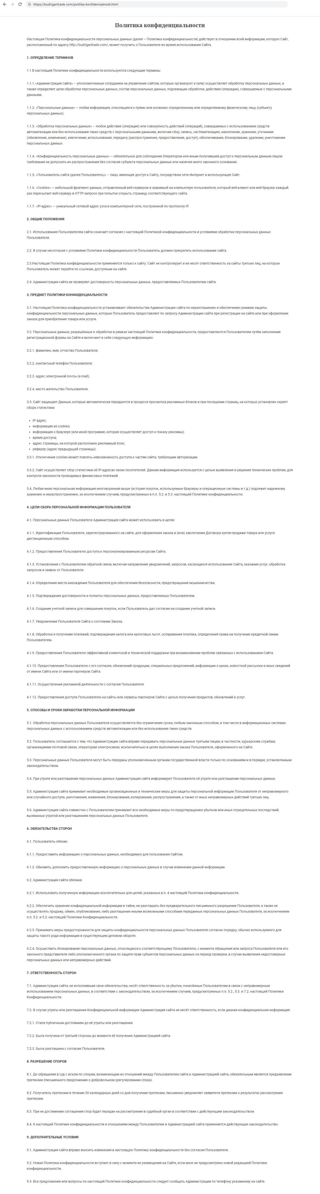 Жулики BudriganTrade представили самую обычную политику конфиденциальности. Рассказали какую информацию собирают, как хранят и защищают. Но вот только в последних пунктах указали, что компания имеет право менять эту политику без согласия клиента, то есть фирма не серьёзно относится к клиентам, и просто вытирает о них ноги.