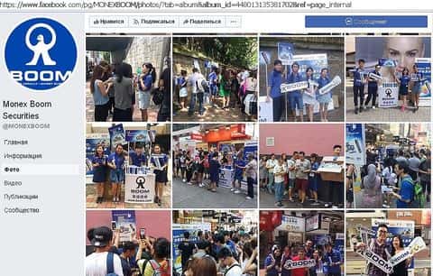 У аферистов Бум Ком есть свой аккаунт на Фейсбук. Основной контент здесь - завлекающие фотографии с каких-то акций в Гонконге, где прохожим раздают логотипы конторы. Есть и так называемые вебинары, но все они на каком-то из азиатских языков. Основная часть видеоряда занимают рекламные ролики.