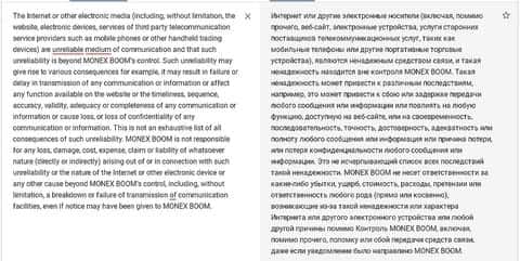 На сайте мошенников Boom Com нет клиентского соглашения как такового - вместо него условия пользования сайтом и торговыми инструментами. В тексте указывается, что контора Бум Ком не несет ответственности за любой материальный ущерб, который клиенты могут понести из-за "ненадежности интернета".