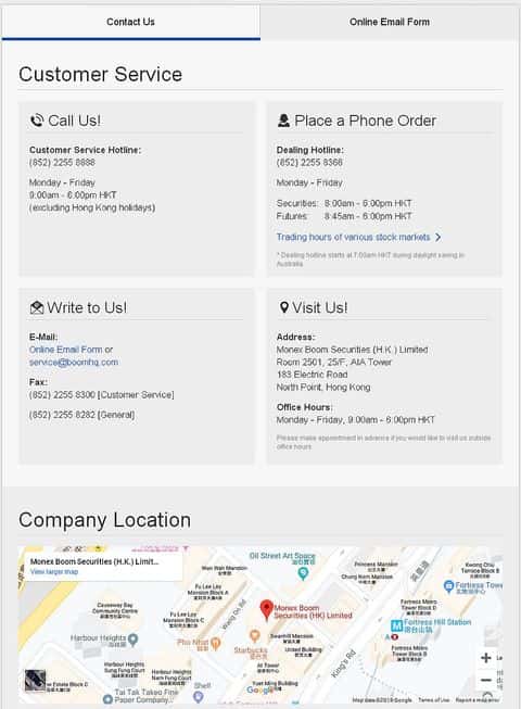 Жулики Boom Com располагаются в Гонконге по адресу Room 2501, 25/F, AIA Tower, 183 Electric Road, North Point. Если верить информации на сайте, готовы принимать посетителей с понедельника по пятницу. Чтобы усыпить бдительность трейдеров они предлагают несколько способов связи: