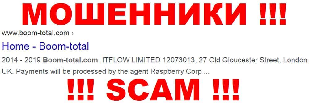Лохотронщики Boom Total утверждаю, что работают от имени некой конторы ITFLOW LTD, которая зарегистрирована в Лондоне. Соответствует ли это действительности - неизвестно.