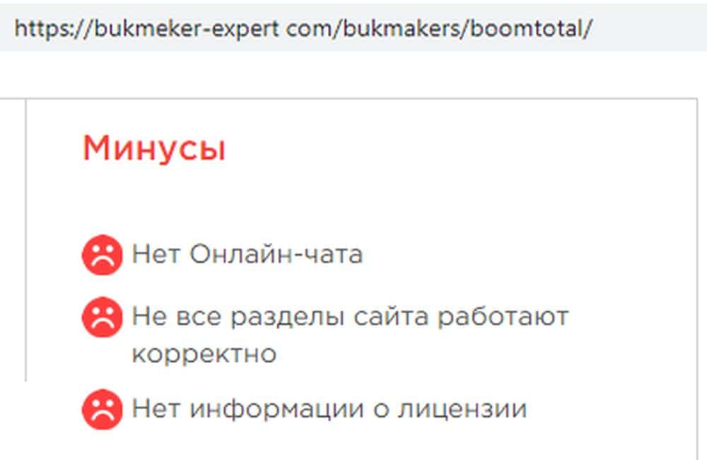 Главный недостаток сомнительной конторы Бум Тотал - отсутствие лицензии. Это значит, что обманутые игроки остаются один на один с мошенниками, не смогут просто забрать деньги.