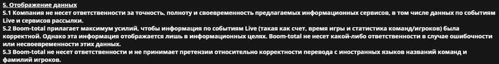 Доверять информации на сайте аферистов Бум Тотал нельзя. Они не отвечают за точность и достоверность данных - очень удобный пункт, чтобы манипулировать коэффициентами.