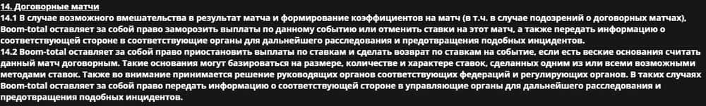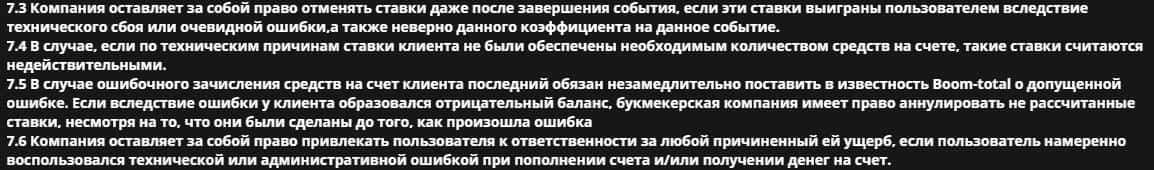 Но аферистам Бум Тотал даже не нужно объясняться перед игроками, если им захочется вдруг заблокировать аккаунт или отменить вывод - в клиентском соглашении есть и такой пункт.