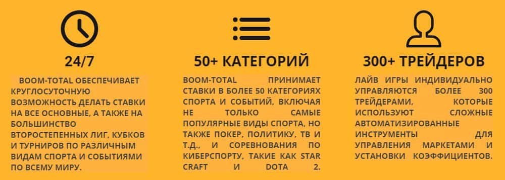 Выиграть кидалы Boom Total не дают. Если игрок делает преимущественно одиночные ставки, его записывают в "вилочники", вывод разрешают раз в 100 дней, сливая пока депозит.