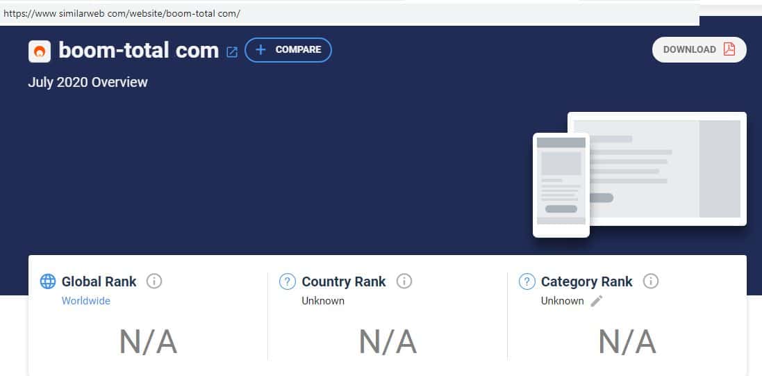 Ресурс симиларвеб ком не может определить источники трафика веб-шараги Бум Тотал. Это говорит о том, что страницу жуликов посещает мало людей - игроки обходят ее стороной.