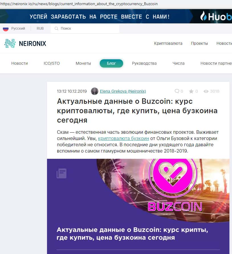История развития и скама проекта BuzCoin на портале neironix io