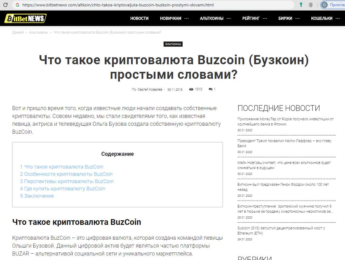 - История падения проекта Бузкоин с надеждой на возрождение в серии статей на ru.crypto-news io