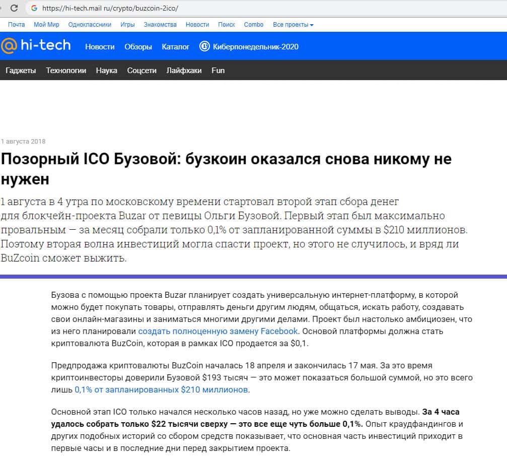 - Причины провала проекта Ольги Бузовой BuzCoin в обзоре на hi-tech.mail ru