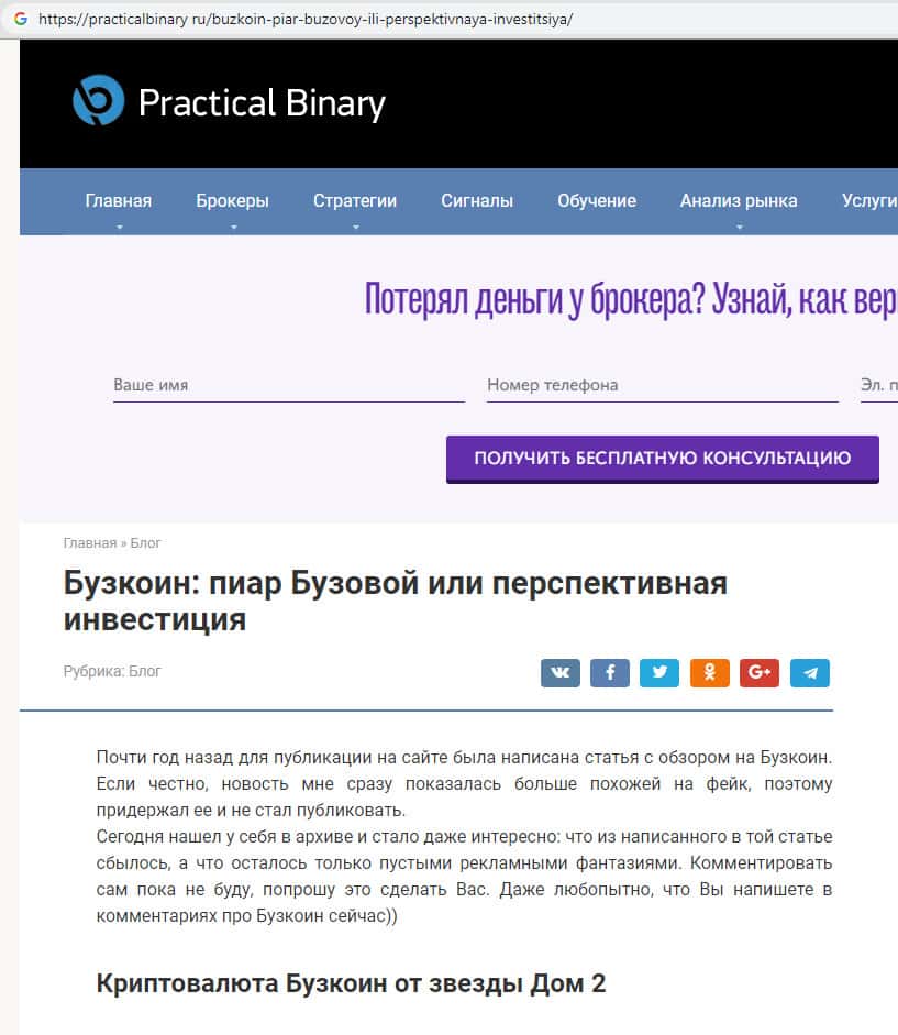 - Прогнозирование скама проекта БузКоин в обзоре на портале practicalbinary ru