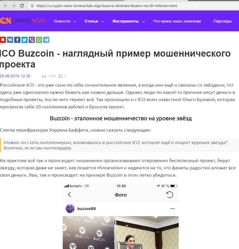 - Об обмане Ользи Бузовой и её команды в проекте BuzCoin на портале 24tm ru
