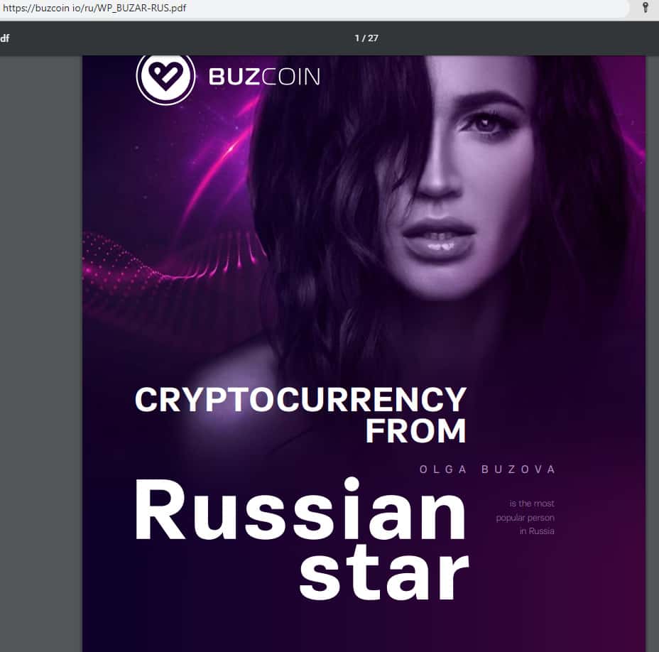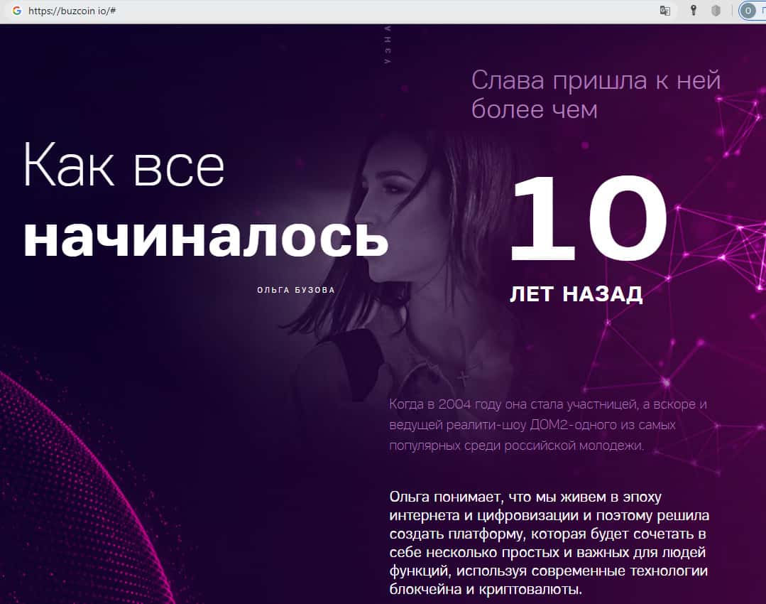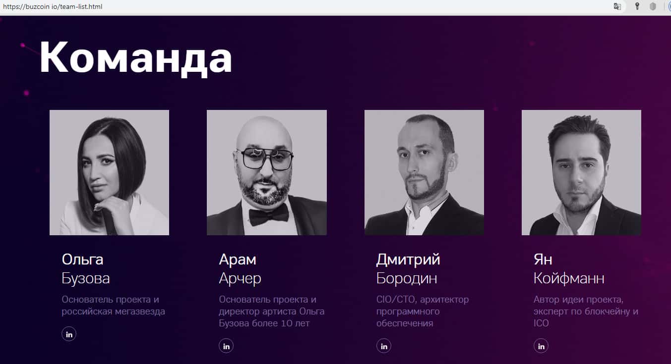 Просматривая информацию о членах команды проекта Бузкоин, хочется плакать, когда читаешь подпись: Ольга Бузова - российская мегазвезда, обидно, что у нас сейчас становится звездами! Так же вопрос, что она вместе со своим директором делает в команде, ведь были заявления, что они покинули проект Бузкоин, а Ольга осталась лишь лицом проекта.
