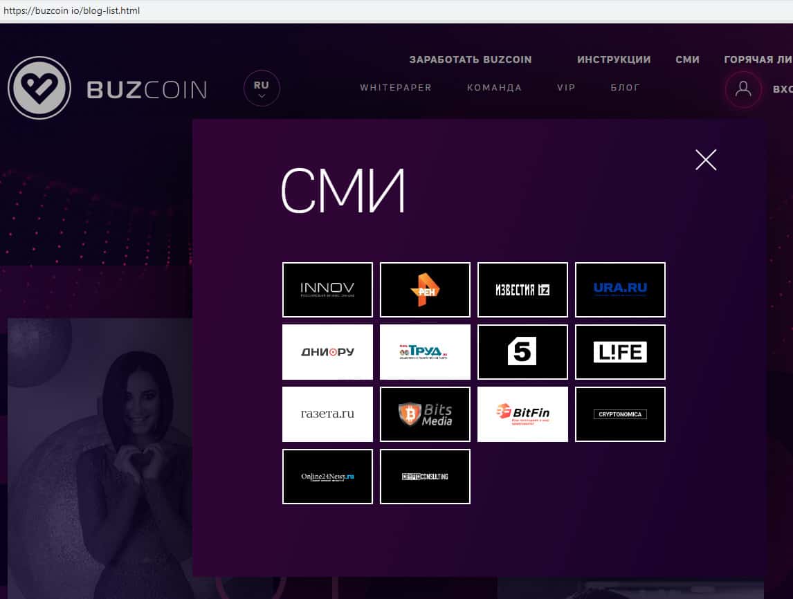 Перечень источников, использованных при написании статьи о мошенническом проекте BuzCoin