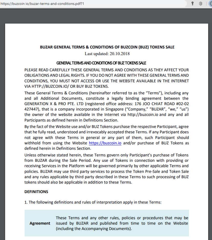 Так же из "условий использования" портала buzcoin io мы узнаем о принадлежности данного ресурса компании GENERATION X & PRO PTE. LTD, зарегистрированной в оффшорной зоне в Сингапуре и занимающейся по данным регистрации разработкой программного обеспечения. По данным портала Сингапурского органа регистрации на данный момент компания имеет статус: вычеркнута.