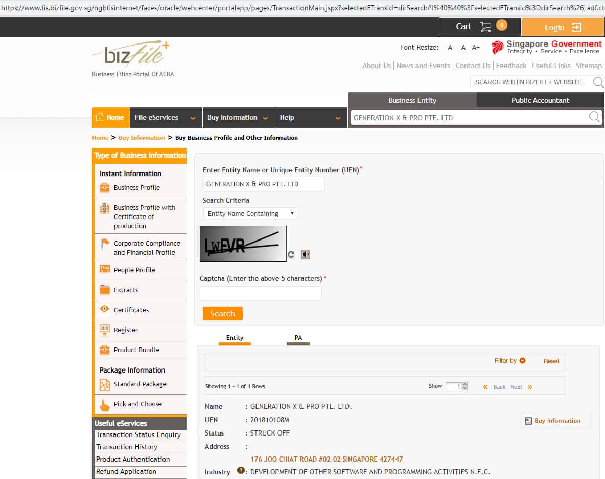 www.tis.bizfile.gov sg - портал Сингапурского государственного органа регистрации компаний