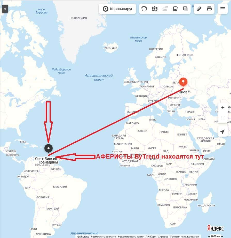 Сент Винсент и Гренадины государство, которое находится в Карибском бассейне. Оно попадает под оффшорную юрисдикцию и много мошеннических организаций пользуются этим! На островах не действует территориальный принцип налогообложения! В случае слива шараги ByTrend, доказать что-либо в суде против жуликов, будет практически не возможным!!!