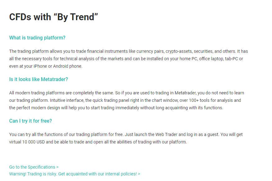 Торговая платформа лохокухни ByTrend позволяет торговать разными финансовыми инструментами: валютные пары, бинарные опционы, ценные бумаги и другое. Но жулики не только широким выбором инструментов манипулируют, а еще делают акцент на качественном анализе финансового рынка. То есть, пытаются имитировать прозрачность интересов брокера!
