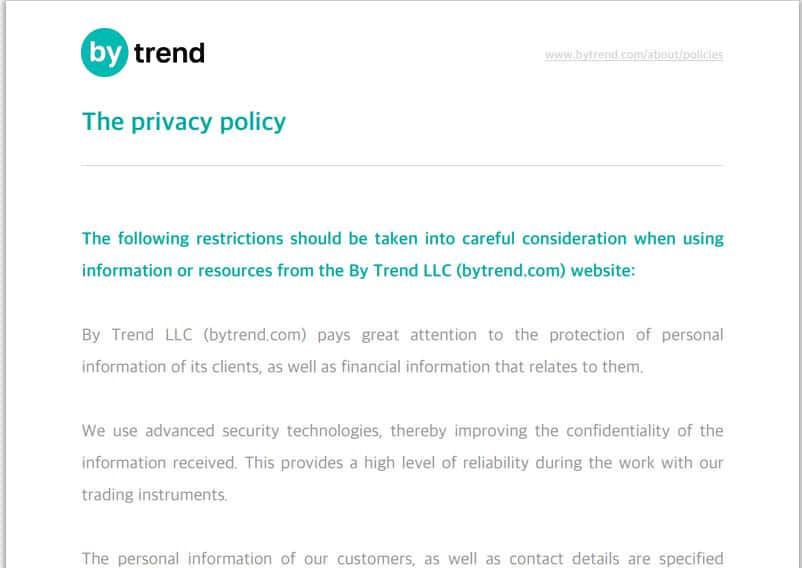 Политика конфиденциальности аферистов ByTrend не защищает персональные данные юзеров!