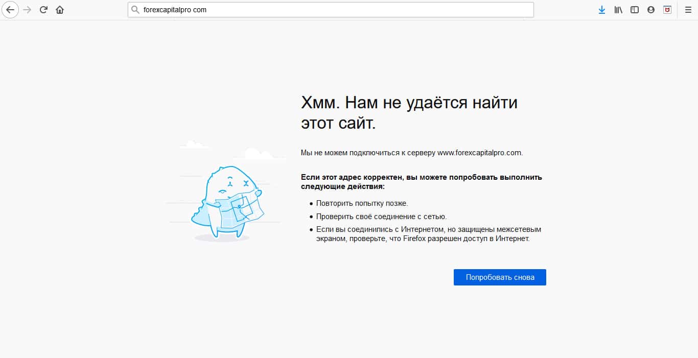 После того как сам проект Capital Forex Pro был закрыт, жулики закрыли и сам сайт, потому что нет смысла его держать более и платить за домен. А учитывая то, что это низкосортная кухня, которая рассчитана на короткий срок - тем более. Поэтому в таким итоге ничего удивительного нет.