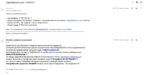 Жалоба на аферистов КапиталЛевел - клиент утратил более 4000$