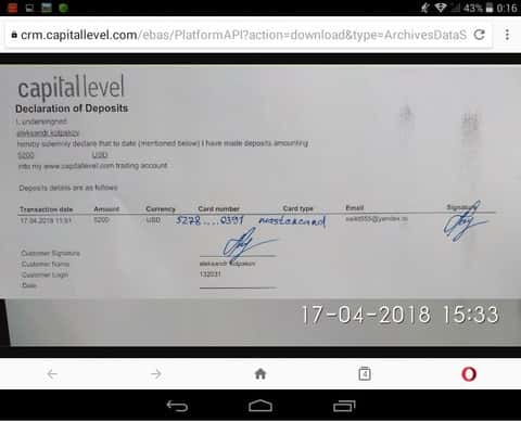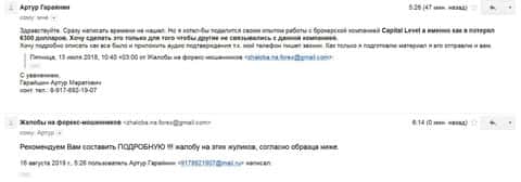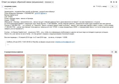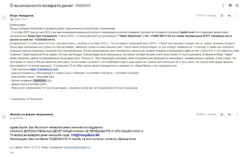 - Жалоба на аферистов КапиталЛевел - клиент утратил более 4000$