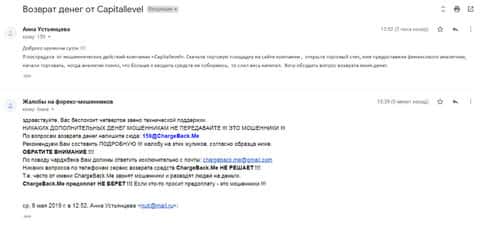Один пострадавший от действий форекс-аферистов рассказал свою печальную историю. Когда он связался с жуликами Capital Level, то поначалу даже и не понял как согласился вложить туда деньги. Всему послужила психологическая обработка. Но теперь, чтобы вывести обратно 10 000 долларов, ему пришлось написать все подробности случившейся ситуации в компанию ChargeBack.Me где специализируются на решении таких проблем.
