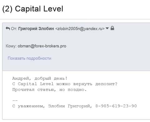 Отзыв о брокерской конторе Capital Level от реального клиента