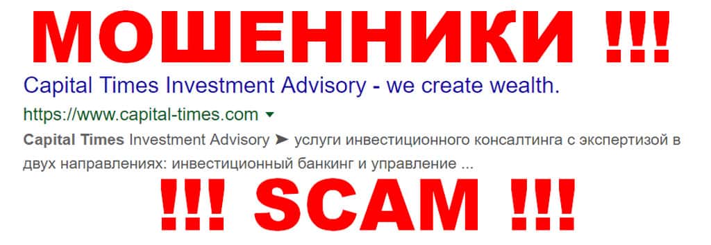 Капитал Тайм – мошенники, прикидывающиеся инвестиционной компанией. Как известно, большинство контор аферистов произрастают с русскоязычных стран, так как нищета и безработица там бьёт все масштабы. Одно из них стала и Capital Times, базирующаяся в Украине. Сотрудничество с Капитал Тайм приведёт к потере всех вложенных средств!
