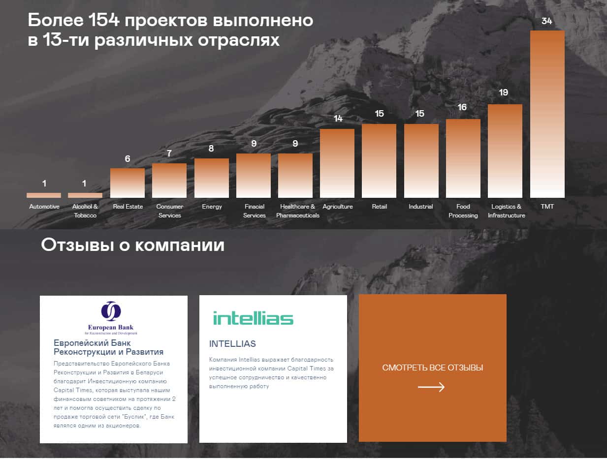 На своём веб-портале мошенники Capital Times пишут о сотнях проектов и огромном количестве довольных клиентов (ни один из которых не был обнаружен). Конечно же, аферисты Капитал Тайм намеренно врут для того, чтобы привлечь будущих жертв рассказами об успехе, которого на деле шулера добиваются лишь обманом честных людей и кражей их средств.
