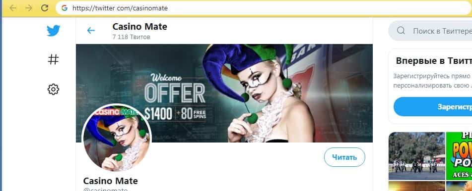 - Активность подозрительного казино Casino Mate в социальных сетях