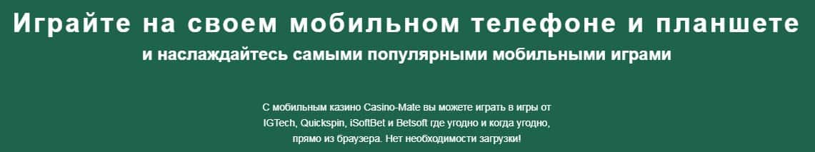 На своем официальном сайте пекарня Casino Mate предлагает вариант заработка с платформы без особых усилий и играть, сливая свои деньги, даже с мобильного телефона или планшета в любом месте.
