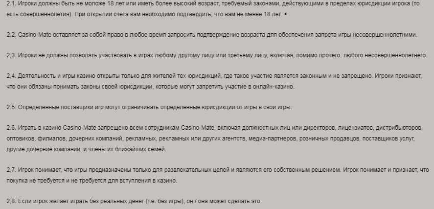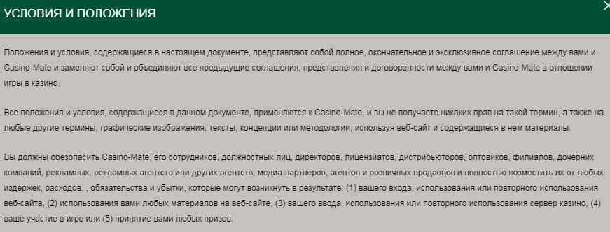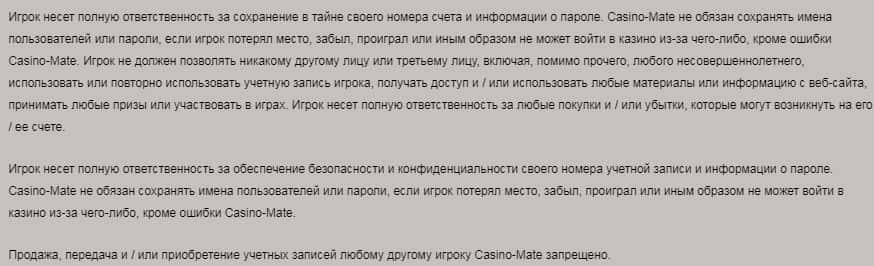 Далее рассмотрим факт наличия клиентского соглашения, в котором у шараги Казино Мате подвох в каждой строчке, а потенциальный игрок должен с этим согласиться, дабы начать якобы зарабатывать деньги.