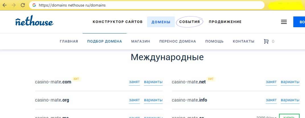 - Анализ доменов Casino Mate на сайте domains nethouse ru