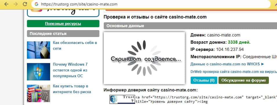 Проверка на одном из сайтов показала совсем мало данных о мошеннической конторе Казино Мате, поэтому никакой новой информации найти о них не удалось.