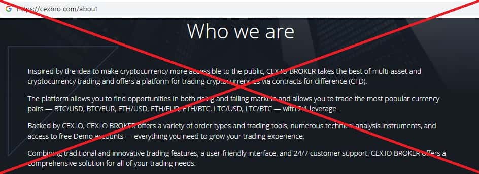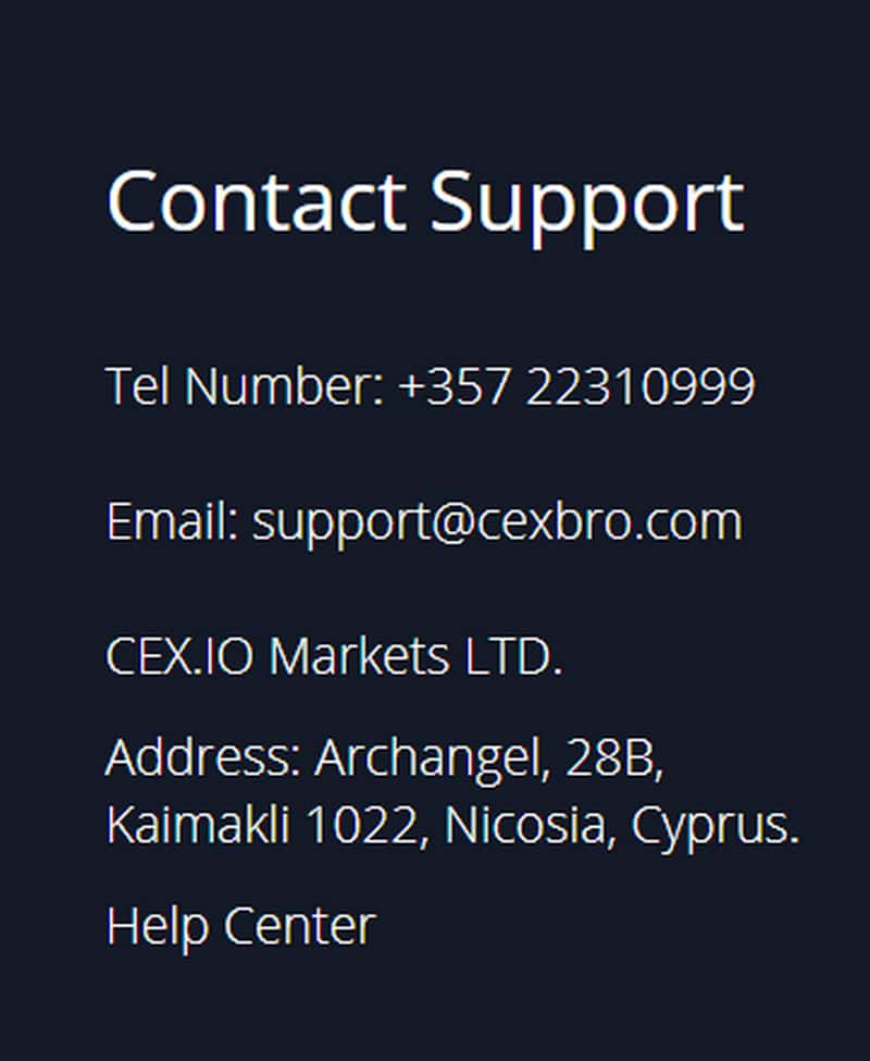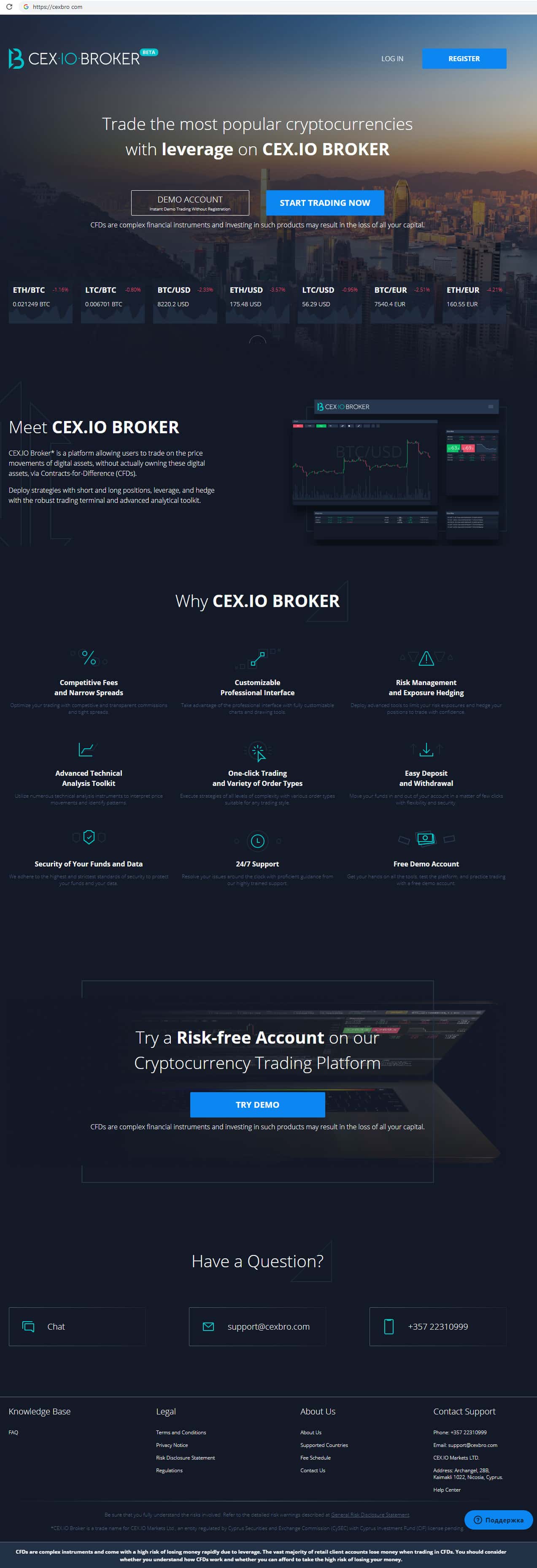 - Контактная информация о скам-брокере CEX.IO BROKER