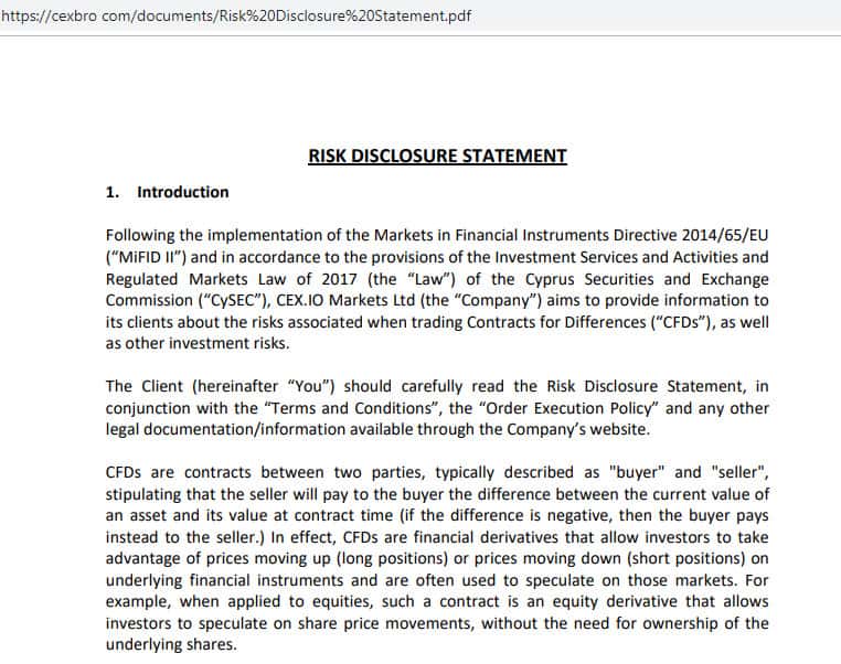 Заявление о раскрытии рисков скам-организации CEX.IO BROKER