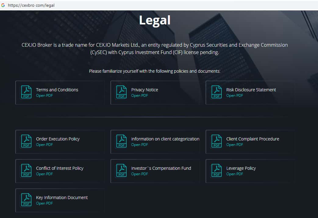 Мошенники пишут о том, все представленные документы легальные, вроде CEX.IO Broker является торговой маркой CEX.IO Markets Ltd., юридического лица, регулируемого Кипрской комиссией по ценным бумагам и биржам с ожидаемой лицензией Кипрского инвестиционного фонда.