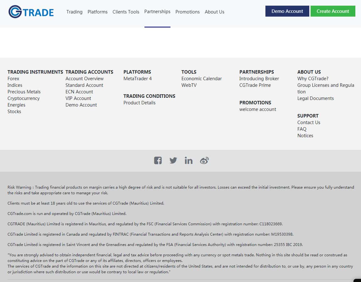 Завершается же сайт у проходимцев ЦГ Трейд довольно стандартно и ожидаемо, а именно ссылками на различные разделы подвального сайта аферистов CG Trade и предупреждением об отказе от ответственности мошенниками ЦГ Трейд за потери наивных пользователей сети интернет. На изображении, расположенном ниже, вы можете наглядно увидеть окончание сайта жулья.