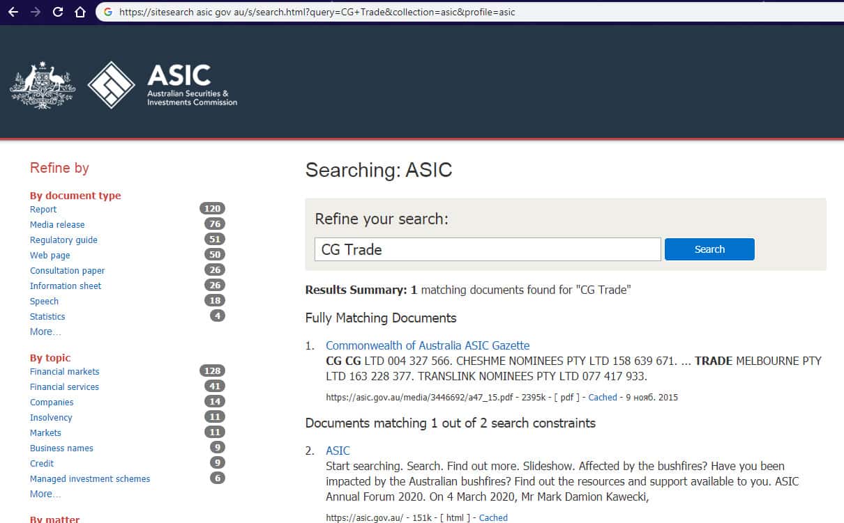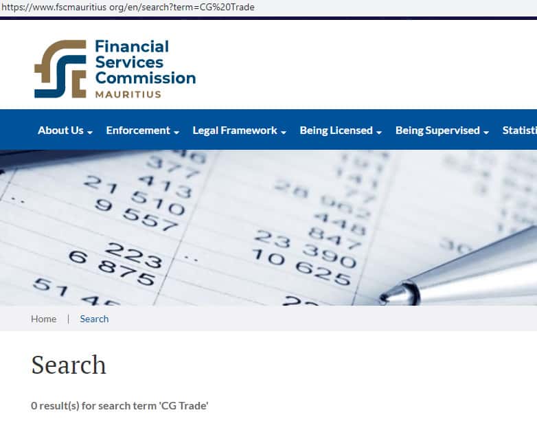 Несмотря на то, что аферисты CG Trade упоминают о своей "якобы" лицензии еще в начале своего подвального сайта, сами же мошенники ЦГ Трейд не предоставляют никаких подтверждающих данный факт ссылок. На изображении, расположенном ниже, вы можете наглядно увидеть результаты поиска мошенников на сайте указанного же ими регулятора.