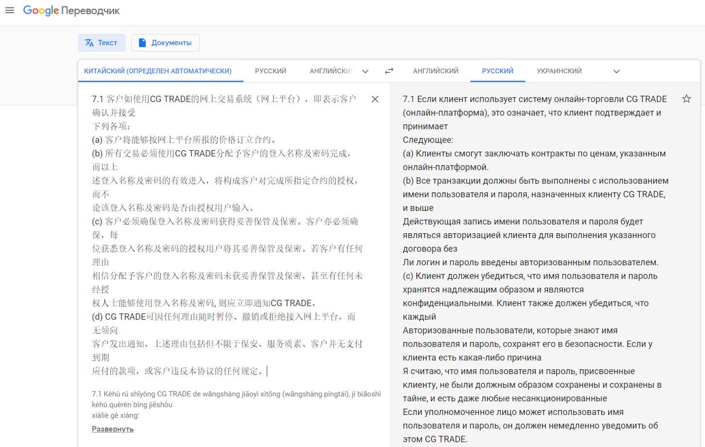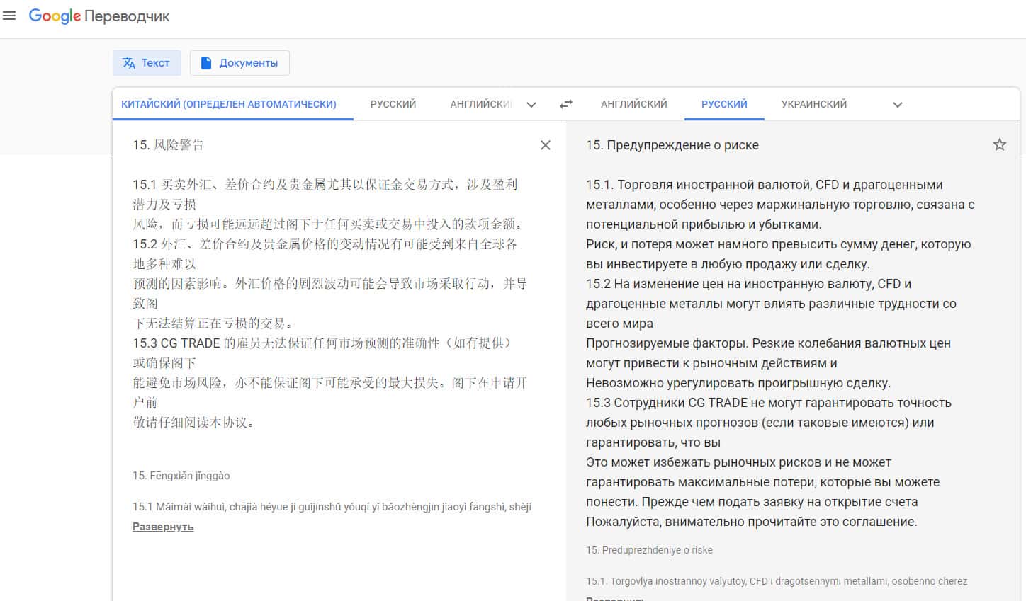 Ввиду своей противозаконной деятельности и крайне низкого бюджета аферисты CG Trade даже не удосужились нормально перевести свой подвальный сайт, поэтому часть их сайта на английском, а часть на китайском. Данный факт снова указывает на крайне низкий бюджет при разработке сайта, что вы можете наглядно увидеть на изображении, расположенном ниже.