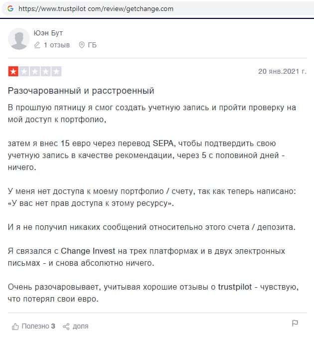 - Отзывы о скам-организации Чейндж Инвест, ныне присутствующие в сети-интернет